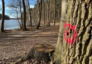 Numery na pniach drzew idą w dziesiątki. Na kolejnych drzewach widać oznaczenia czerwoną farbą. Kto ostatnio spacerował brzegiem Jeziora Głębokiego, ten pewnie poczuł niepokój na ten widok. „Tak naznaczone drzewa, to w realiach Szczecina dobrze nie wróży"...