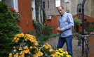 Rower sprzed dziesiątek lat, kupiony w punkcie skupu złomu za 15 zł - teraz w roli koszyka wypełnionego komarzycami. Trzepak służący do zawieszania donic z kwiatami, kolejny rower, w sumie na chodzie i z demobilu, oparty o pergolę stalową nad chodnikiem...