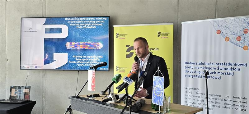 O rencie lokalizacyjnej mówił także zarządzający terminalem Sebastian Wionczek, który zwracał uwagę na doskonałe położenie inwestycji w kontekście morskiej energetyki wiatrowej.