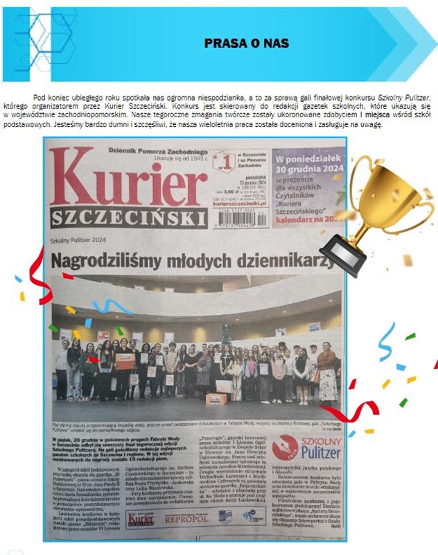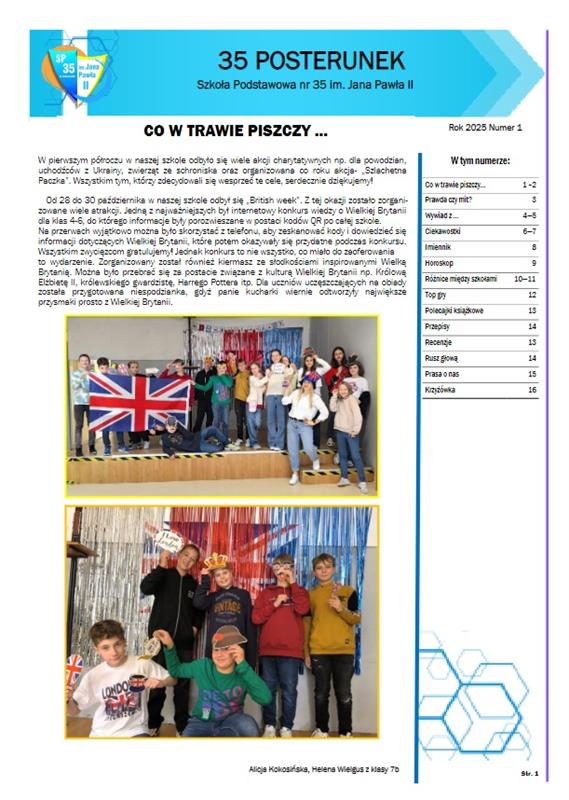 W minionym roku główna nagroda w kategorii szkól podstawowych powędrowała właśnie do nich, dlatego cieszymy się niezmiernie, że redakcja „35 Posterunku” – gazetki Szkoły Podstawowej nr 35 im. Jana Pawła II w Szczecinie nie zniża lotów i zagościła – kolejny raz! – w naszym konkursie na najlepszą prasę szkolną w Zachodniopomorskiem.