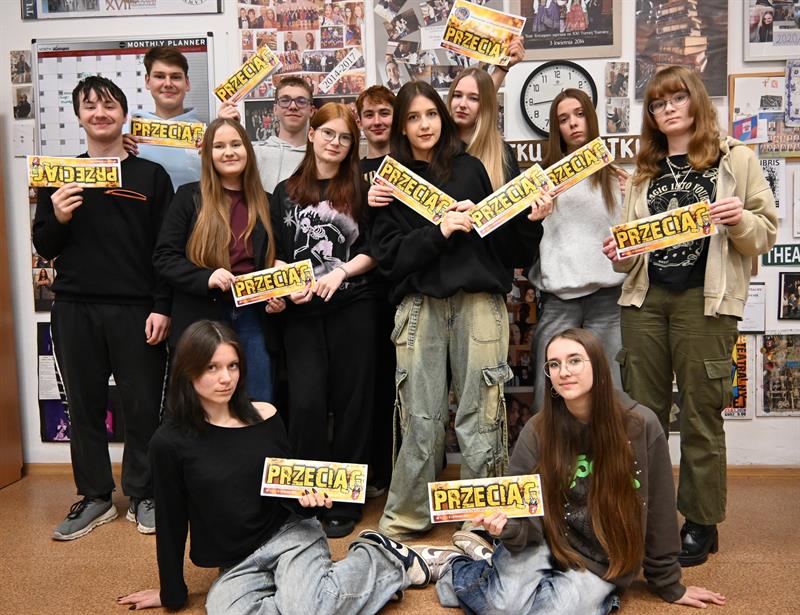 Zespół „Przeciągu” tworzą uczniowie klas 2 a i 1 c: Kacper Filipczak, Michalina Kośka, Julia Krzemieniec, Zuzanna Krzemińska, Laura Lisek, Natalia Majchrzak, Małgorzata Malec, Dominika Piasecka, Mikołaj Podgórski, Sofiia Sakhnenko, Lena Suwała, Zofia Szenwald, Nikola Szwark, Klaudia Wąs, Nikola Zdral, Aleksander Znojek, Maja Zwierzyńska, Aniela Żak. Redaktorką naczelną pisma jest Zofia Szenwald.