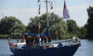 Na specjalnie przygotowanej pływającej scenie w Centrum Żeglarskim grał i śpiewał zespół szantowy „Stary Szmugler”. Utwory podobały się, chociaż siąpił drobny deszcz i część nielicznej publiczności skryła się pod parasolami. W tej żeglarskiej scenerii...