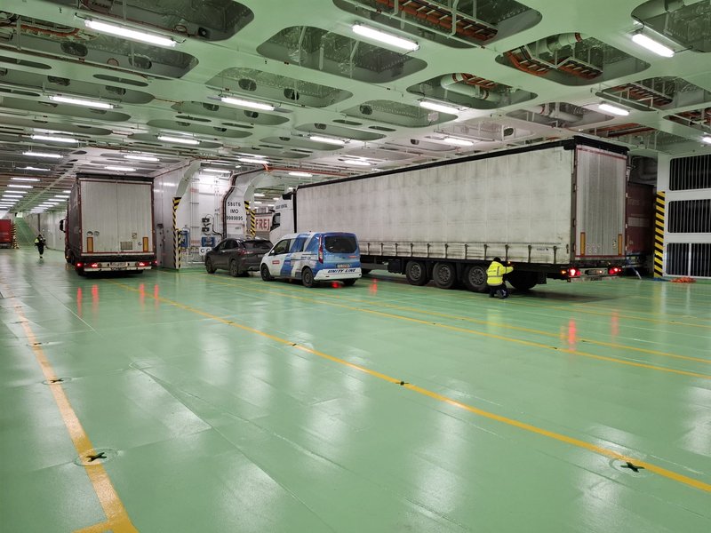 Na pokładzie podczas inauguracyjnego kursu znalazło się 158 pojazdów ciężarowych (w tym 12 naczep) oraz 147 kierowców, a także 9 samochodów osobowych i 14 pasażerów. Pasażerowie zostali przywitani w wyjątkowy sposób - terminal został udekorowany, a na pokładzie czekał symboliczny tort inaugurujący pierwszy rejs.