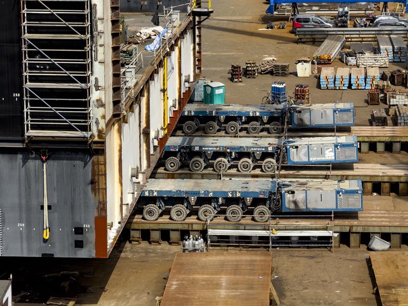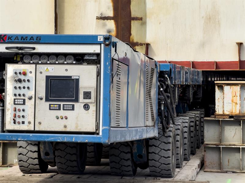 Budowany moduł ma 84 metry długości, 48 metrów szerokości, 19 metrów wysokości oraz masę 3,5 tys. ton. Do przemieszczenia modułu wykorzystywane są samobieżne transportery modułowe (SPMT). Wieloosiowe zestawy pozwalają na kontrolowane i precyzyjne manewrowanie wielotonowym ładunkiem na nabrzeżu.