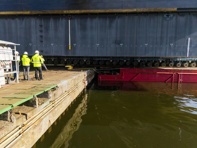 Przy tym wodowaniu wykorzystano specjalistyczny ponton o dużej nośności. Po nasunięciu modułu na pokład, ponton jest odholowywany na odpowiednią głębokość i poddany kontrolowanemu zanurzeniu, aż do uzyskania pływalności przez konstrukcję. Cały proces będzie trwał kilkadziesiąt godzin.
