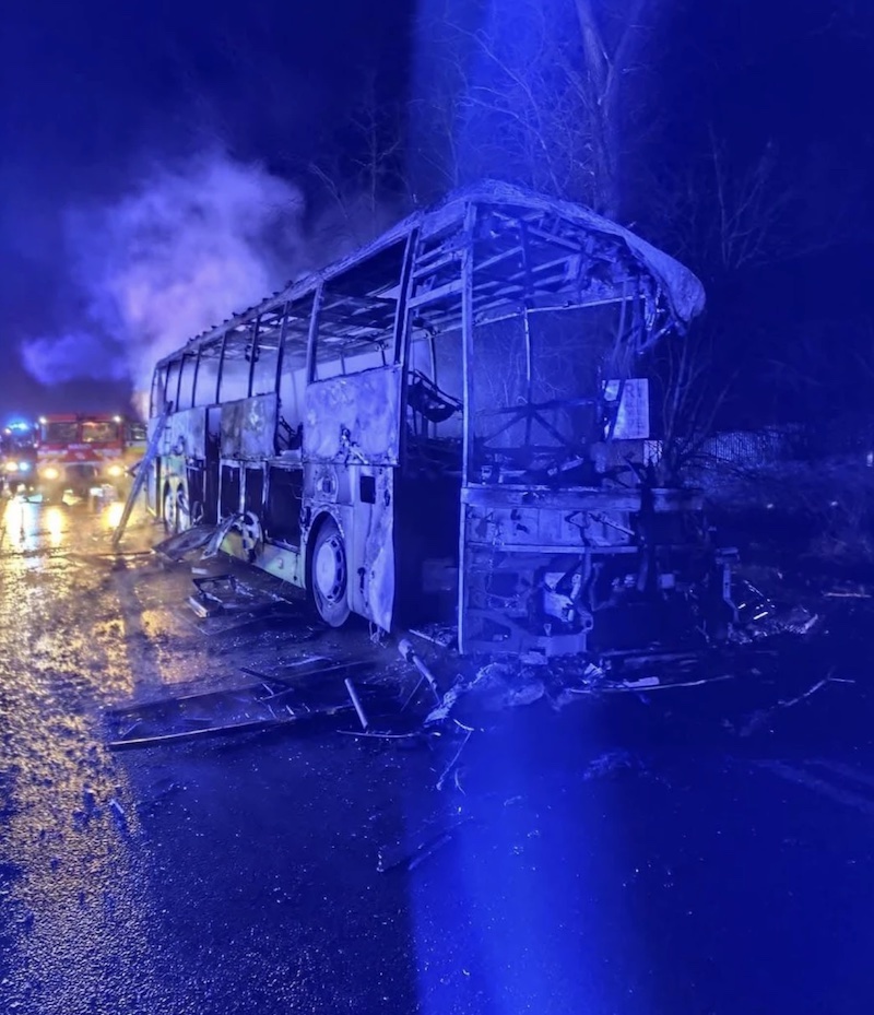 Według rzecznika MSZ, w efekcie wypadku oraz pożaru autobusu są też ranni.