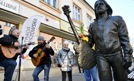 Fani bluesmana Tadeusza Nalepy przy jego pomniku w Rzeszowie obchodzili w niedzielę 4 marca 50. rocznicę powstania zespołu Breakout i 11. rocznicę śmierci muzyka. (pap) Fot. PAP/Darek Delmanowicz