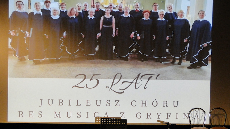 W piątek (21 listopada) w wypełnionej po brzegi sali widowiskowej Gryfińskiego Domu Kultury odbył się wyjątkowy koncert – Chór Res Musica świętował 25-lecie swojej działalności (powstał jako Chór Nauczycielski, a w 2004 r. założył stowarzyszenie i przyjął obecną nazwę). Jubileusz był okazją do przypomnienia historii zespołu, który od początku stał się wspaniałą wizytówką Gryfina w kraju i za granicą. W swoim dorobku posiada wiele prestiżowych nagród i wyróżnień zdobytych na festiwalach oraz w konkursach chóralnych. Wielokrotnie był ozdobą wydarzeń odbywających się nie tylko na rodzimym podwórku. W piątkowym koncercie występem chóru urodzinowo dyrygowali kolejno: Grzegorz Handke (założyciel i pierwszy dyrygent prowadzący śpiewającą grupę przez 20 lat), Tomasz Witkowski, Iwona Wiśniewska-Salamon, Nina Salamon-Franczuk (obecna szefowa śpiewającej grupy). Wydarzeniu towarzyszyła miniwystawa zdobytych przez zespół dyplomów i nagród oraz bogato ilustrowana pamiątkowymi zdjęciami kronika gryfińskiego Chóru Res Musica.