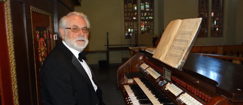 Na zdjęciu: Przy zabytkowym instrumencie w Kościele pw. Chrystusa Króla tym razem zasiadł Christopher Weaver.