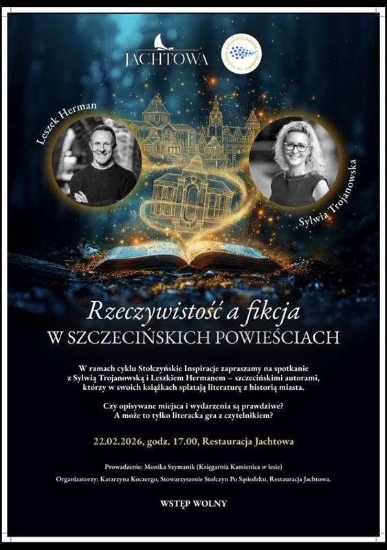 W ramach cyklu Stołczyńskie inspiracje w niedzielę 22 lutego o godz. 17 w Restauracji Jachtowa przy ul. Lipowej odbędzie się spotkanie ze szczecińskimi autorami powieści - Sylwią Trojanowską i Leszkiem Hermanem.