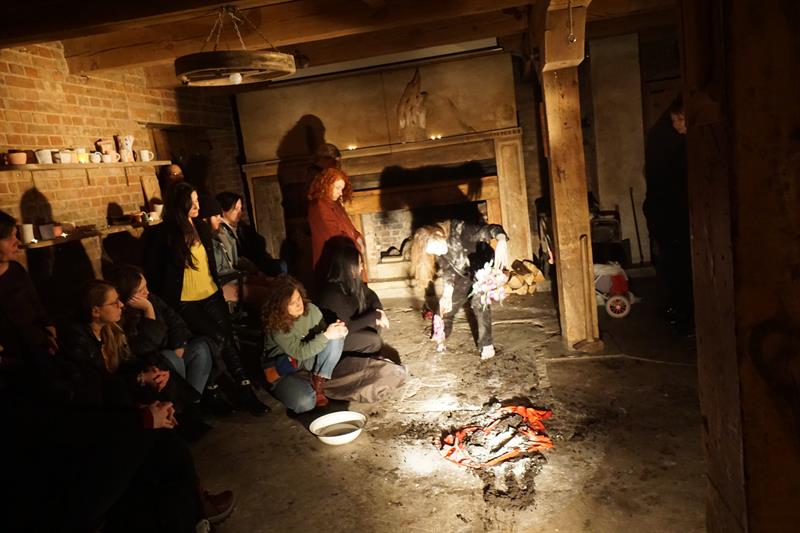 Opowieść o wygnaniu i nowej ziemi jest zaklęta w gesty, mimikę i mowę ciała. Wywołanie emocji za pomocą tych środków przekazu jest wielką sztuką. Zapewne czynnikiem decydującym jest tu fakt, że taniec to rytuał odwołujący się do ludowych obyczajów. Performerka nazywa swoje przedstawienie „Dziadami” – umownym spotkaniem z przodkami.