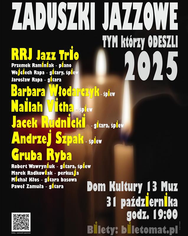Koncert odbędzie się w piątek (31 bm.) o godz. 19 w sali kominkowej Domu Kultury 13 Muz, przy placu Żołnierza 2 w Szczecinie. Zagrają szczecińscy muzycy jazzowi, rockowi i bluesowi, którzy z potrzeby serca chcą wspomnieć swoich kolegów, nauczycieli, znajomych, a czasami dawnych idoli. W koncercie wystąpią: solistki Basia Włodarczyk i Neilah Vitha, zespół RRJ JAZZ TRIO, czyli Przemek Raminiak - piano, Wojciech Rapa - gitara, śpiew i Jarosław Rapa – gitara; dr Jacek Rudnicki - gitara, śpiew; Andrzej Szpak - śpiew; zespół Gruba Ryba ze Szczecina w składzie: Robert Wawryniuk – gitara, śpiew, Marek Radkowiak - perkusja, Paweł Zamuła – gitara, Michał Kłos – gitara basowa.