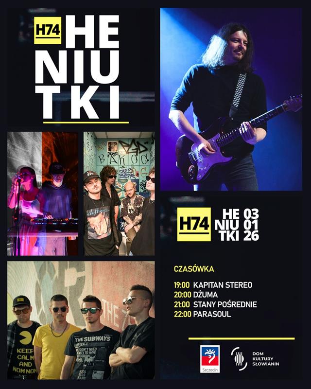 Koncert „Heniutki 74” odbędzie się 3 stycznia o godz. 19. Zagrają: Kapitan Stereo, Dżuma, Parasoul, Stany Pośrednie. Dzięki zakupionym przez publiczność cegiełkom na poprzednich koncertach udało już kupić: wiolonczelę dla Kingi z Pyrzyc, pianino dla Mai ze Szczecina, flet poprzeczny dla Tamary z Gryfic, keyboard dla Marysi i Kornelii oraz gitarę dla Natalki (obie ze Szczecina), altówkę dla Karoliny z Banic k. Golczewa, gitary dla Kuby i Kajetana oraz wiolonczelę dla Oliwii (wszyscy z Klinisk Wlk.).