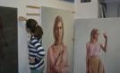 Aż trudno uwierzyć, że malarka, która tworzy obrazy na dużych formatach, zajmuje tak małe pomieszczenie. Bym mógł wejść do środka, artystka musi wycofać się w głąb pokoiku. Przeciskam się więc między framugą a obrazami i oto nagle staję na środku tej...
