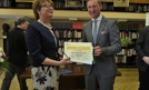 Mirosława Różycka, zastępczyni dyrektora Biblioteki Głównej Uniwersytetu Szczecińskiego, podczas uroczystości w Książnicy Pomorskiej otrzymała Nagrodę im. Stanisława Badonia dla Bibliotekarza 2015 Roku w VII edycji Konkursu Marszałka Województwa Zachodniopomorskiego...