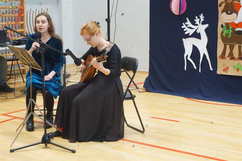 Łańcuch zdobił szkolną salę gimnastyczną, gdzie odbywała się centralna część festynu. Jej najważniejszymi punktami były występy uczniów oraz kadry nauczycielskiej. Prezentowano tańce tradycyjne i nowoczesne oraz piosenki świąteczne i kolędy, w tym ukraińskie. W przerwie pomiędzy występami odbyła się także licytacja stroików świątecznych oraz świątecznego tortu wykonanego przez p. Magdalenę Kolus, mamę jednej z uczennic. Był też fotelik samochodowy oraz oryginalna torebka wykonana własnoręcznie przez Gabrielę Marach – szkolną pedagog. Pieniądze uzyskane z aukcji zaksięgowano i przeznaczono na szkolne potrzeby.