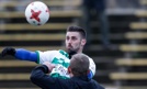 I liga koszykarzy: SPÓJNIA Stargard - WKLS ŚLĄSK Wrocław 77:69 (20:17, 22:19, 12:15, 23:18) SPÓJNIA: Dymała 14, Bręk 13, Pabian 13, Fraś 12, Czujkowski 10, Pytyś 5, Raczyński 5, Wilczek 5, Szymański, Koziorowicz Liderujący w tabeli stargardzianie niezbyt...