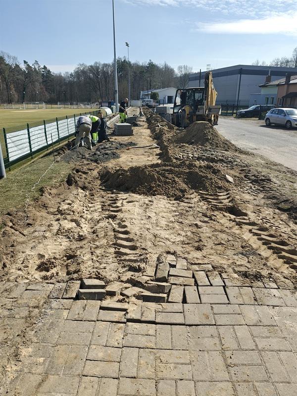 W ramach zadania prowadzone są niezbędne prace rozbiórkowe oraz roboty brukarskie i ziemne, obejmujące m.in.: przygotowanie terenu pod trybunę gości, budowę chodników oraz wzmocnienie skarpy. Obiekt zyska również nowe ogrodzenie, które poprawi bezpieczeństwo i estetykę całego terenu.