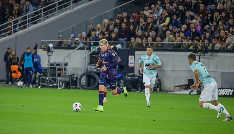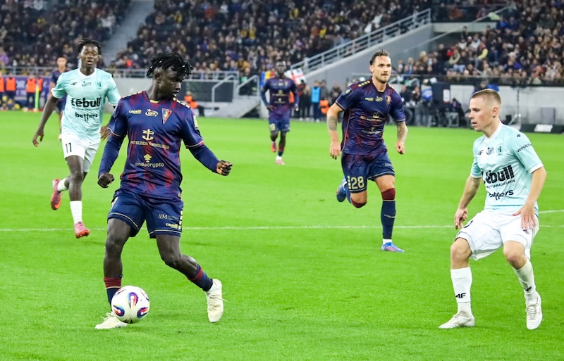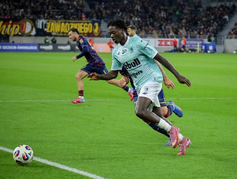 Początek spotkania był wyrównany i gra toczyła się w środku pola, choć szczecinianie próbowali ataku pozycyjnego, a goście nastawili się na kontrataki, ale po kwadransie zaczęły się emocje. Pierwszy celny strzał, z którym poradził sobie Cojocaru, oddał Lokilo, a w 16. minucie daleki strzał Greenwooda został obroniony, zaś dwie minuty później po dobrym dośrodkowaniu Greenwooda, Juwara strzałem głową trafił w poprzeczkę i później dwukrotnie dobijał Grosicki (Plach odbił piłkę, a Drapiński cudem zablokował strzał), więc skończyło się tylko rzutem rożnym. Po trzech minutach w sytuacji sam na sam z bramkarzem, choć z ostrego kąta, znalazł się Molnar, lecz golkiper był górą. W 24. minucie ostro w polu karnym atakowany był Greenwood, ale po krótkiej przerwie na kontakt z VAR-em, sędzia nakazał grać dalej. Dwie minuty później pierwszą, ale zarazem 100-procentową okazję miał Piast, ale strzał Sancy sprzed bramki głową wybił Ulvestad. Później oglądaliśmy dwa strzały Greenwooda (obroniony i minimalnie niecelny) oraz uderzenie Juwary tuż obok słupka. W 39. minucie po udanym pressingu Molnar wyłożył piłkę Juwarze, ale ten w świetnej pozycji nie trafił w bramkę. Dwie minuty później Greenwood idealnie dośrodkował z rzutu rożnego, a N'Diaye ładną główką dał szczecinianom prowadzenie. Po stracie gola Piast zaatakował i bardzo szybko, po dalekiej centrze i odegraniu piłki, błąd naszej defensywy wykorzystał Barkowskij z niecałego metra posłał piłkę do pustej bramki. Pierwsza połowa zakończyła się strzałem Juwary obok bramki.