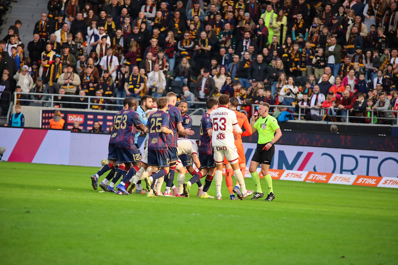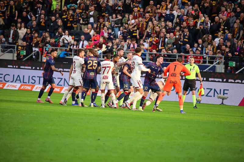 Czerwona kartka: Acosta (brutalny faul). Żółte kartki: Keramitsis, Cojocaru, Szalai - Drągowski, Krajewski. Sędziował: Piotr Lasyk (Bytom). Widzów: 20 600.