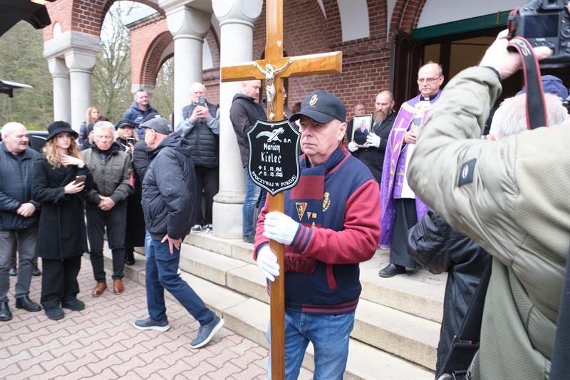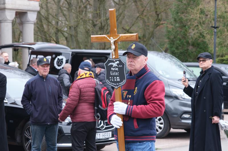 Kapłan prowadzący ceremonię powiedział, że szczególnie teraz, w Wielkim Poście, podążamy do Jezusa, a Marian już przekroczył próg, zaś nasze z nim rozstanie jest tylko przejściowe i możemy spotkać się tam, gdzie otarte będą wszelkie łzy, a pozostanie bezgraniczna radość. Ksiądz wspominał też różne wydarzenia z życia Mariana Kielca i podkreślał, że stale lobbował za Pogonią i dodał na koniec, że tego lobbingu zapewne nie zaprzestanie, tam gdzie jest teraz...