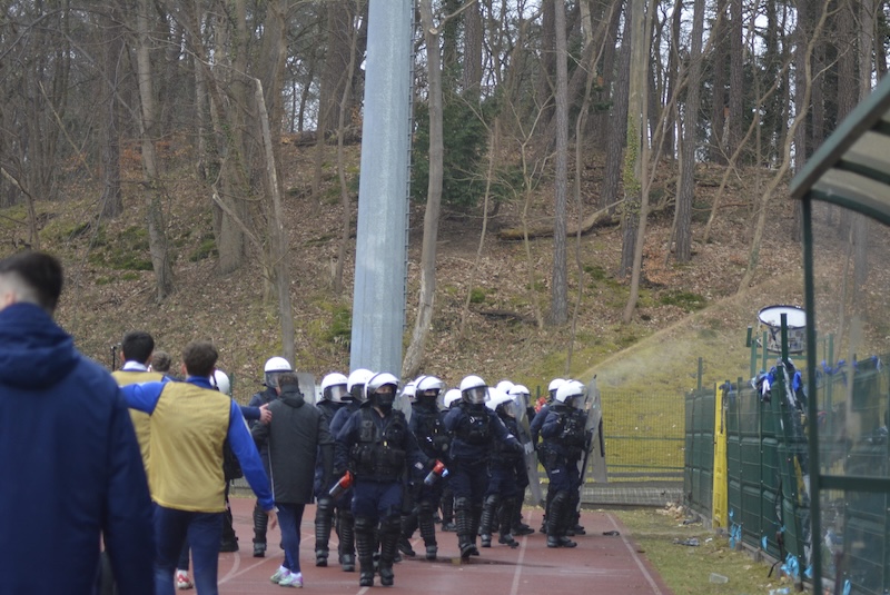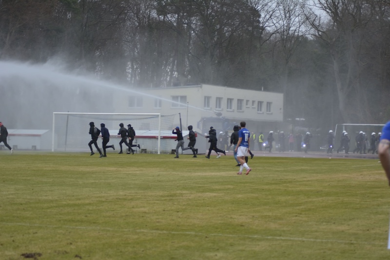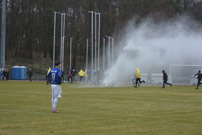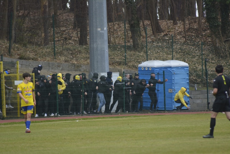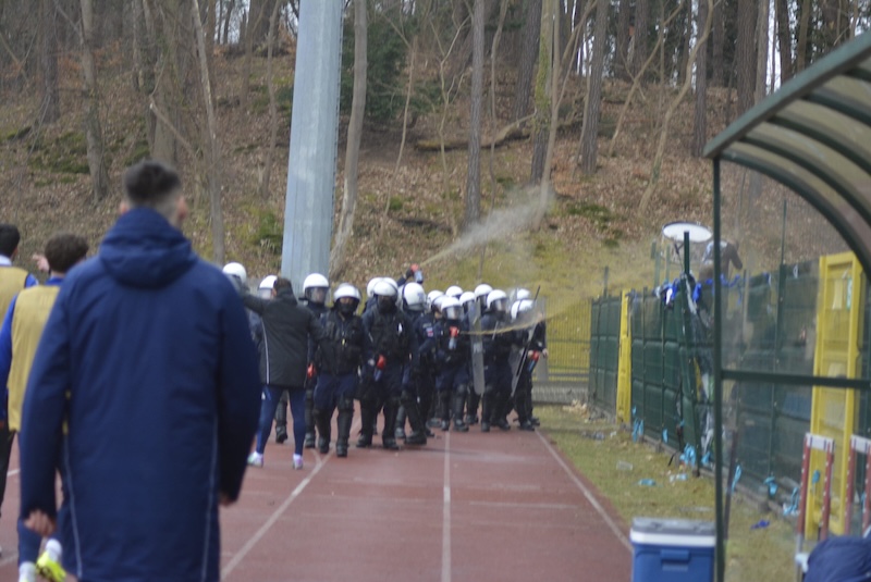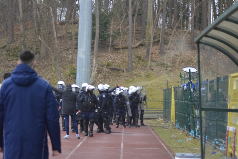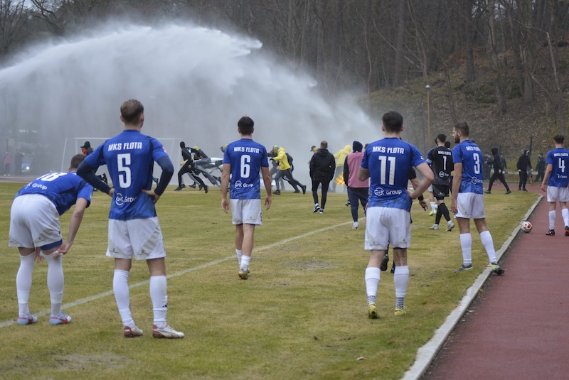 Osobny, bardzo niepokojący rozdział tego meczu to wydarzenia z trybun. Około 65. minuty na boisko wtargnęli kibice gości - od niedawna zaprzyjaźnieni ze szczecińską Pogonią - uprzednio demolując ogrodzenie. Według relacji świadków, w tym momencie powinna zareagować ochrona, jednak interwencji zabrakło. Doszło do starcia agresywnych fanów z Torunia z kibicami Floty. Policja weszła do akcji dopiero po kilku minutach i właśnie ten sposób działania budzi największe kontrowersje. Najpierw użyto armatki wodnej wobec sektora gości i powracających do niego kibiców Elany, lecz nie przyniosło to większego efektu, bo kibice z Torunia po prostu wracali na swoje miejsca. W tym samym czasie fani gospodarzy nie podejmowali pościgu ani dalszej eskalacji, a mimo tego, to właśnie oni zostali potraktowani wyjątkowo ostro przez policję. Gaz pieprzowy użyty w interwencji unosił się w powietrzu do samego końca meczu, bo wylano go naprawdę sporo. Z boku wyglądało to co najmniej irracjonalnie: najpierw fani gospodarzy zostali zaatakowani, potem zachowywali względny spokój, a ostatecznie to oni najmocniej odczuli działania służb. Oglądając z boku tę sytuację można postawić tezę, że interwencja policji jedynie zaogniła sytuację na sektorze Floty, a działania policyjne zostały odebrane jako traktowanie skrajnie niesprawiedliwe. Ta sytuacja wymaga dokładnego wyjaśnienia, bo cień po tym skandalu przykrył naprawdę interesujące widowisko sportowe.