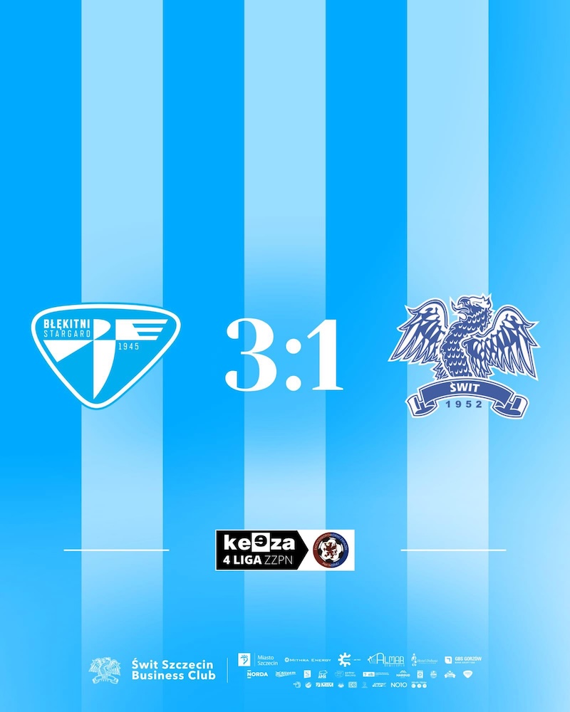 Za nami 19. kolejka Keeza IV ligi ZZPN, w której rezerwy Świtu Szczecin przegrały na wyjeździe z drugim zespołem Błękitnych Stargard 1:3, a jedyną bramkę strzelił dla gości Alan Dziuniak.