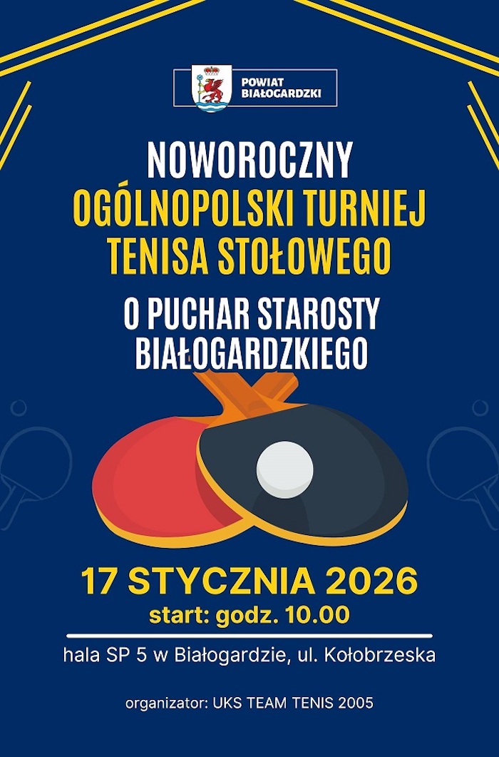 W sobotę 17 stycznia odbędzie się w Białogardzie - Noworoczny Ogólnopolski Turniej Tenisa Stołowego o Puchar Starosty Białogardzkiego.