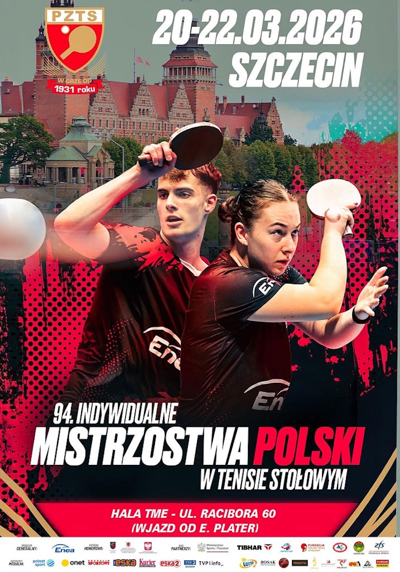 Polski Związek Tenisa Stołowego, Zachodniopomorski Związek Tenisa Stołowego oraz Stowarzyszenie Griffin’s-Spin Szczecin zapraszają na 94. Indywidualne Mistrzostwa Polski w tenisie stołowym, które w dniach 20-22 marca rozegrane zostaną w Szczecinie.