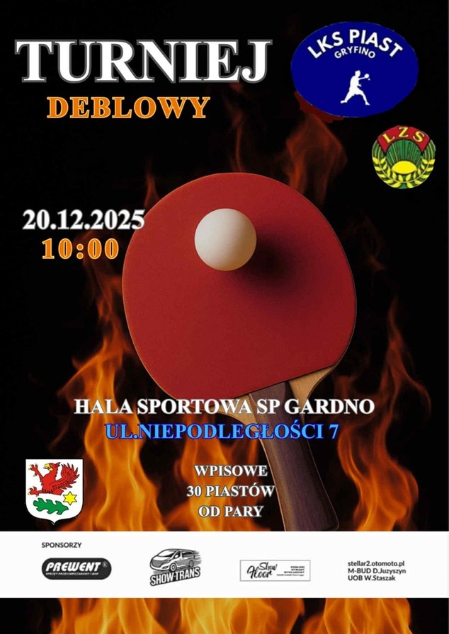 W sobotę 20 grudnia rozegrany zostanie w Gardnie turniej deblowy. Organizatorem imprezy jest klub Piast Gryfino.
