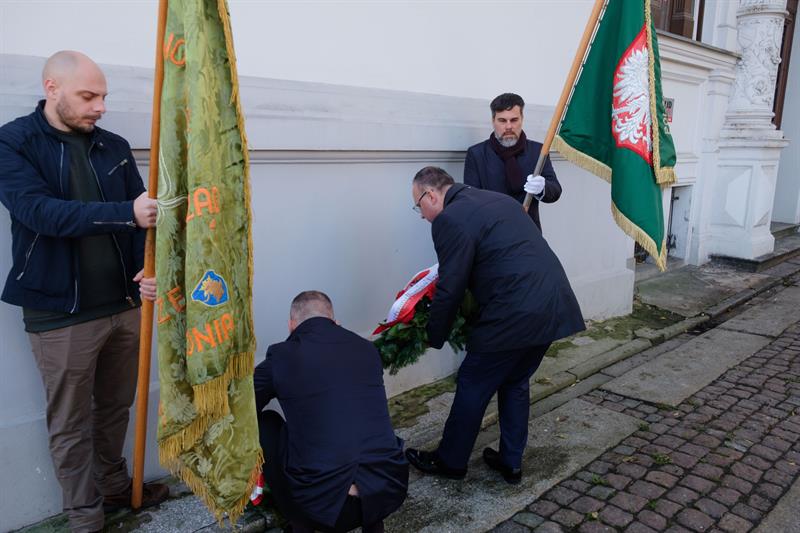 Kameralna uroczystość została zorganizowana pod dawną siedzibą szczecińskiego PSL-u w al. Wyzwolenia 73. Jej uczestnicy złożyli kwiaty. Pojawiły się sztandary ludowców.