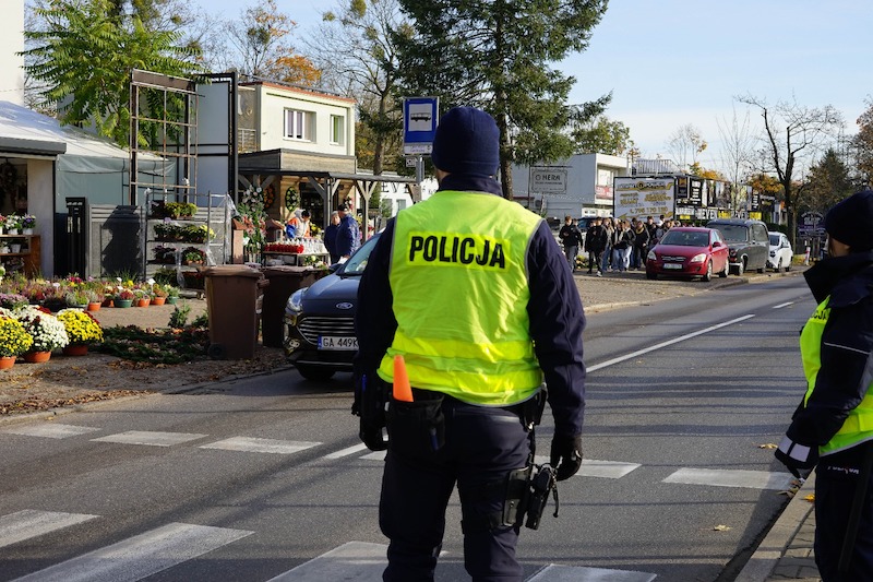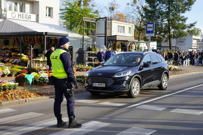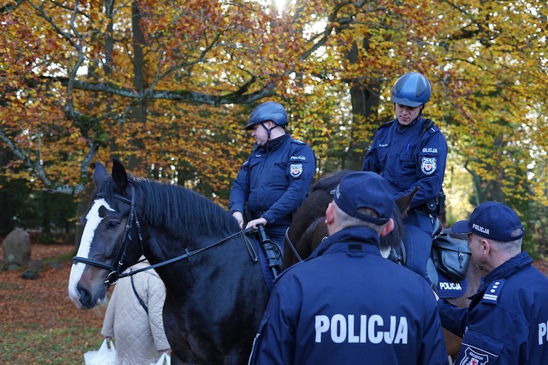 Kontrola ruchu drogowego, konne patrole policji, funkcjonariusze patrolujące teren cmentarza w mundurach i w cywilu. Dziś i jutro Cmentarz Centralny jest i będzie pod ochroną polskich służb.