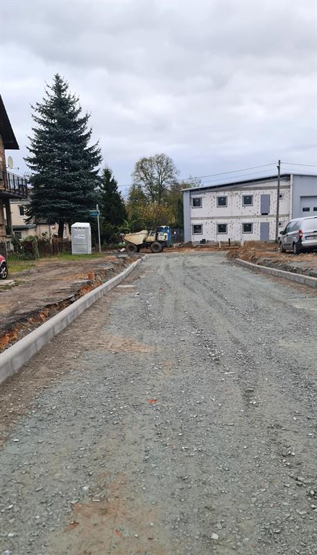 Inwestycja obejmuje budowę nowej nawierzchni bitumicznej wraz z miejscami postojowymi dla samochodów osobowych oraz chodnikami dla pieszych. W ramach opracowania powstała nowa lokalizacja wpustów deszczowych, oddających wodę opadową do systemu istniejącej kanalizacji deszczowej oraz zamontowane zostaną słupy oświetleniowe.