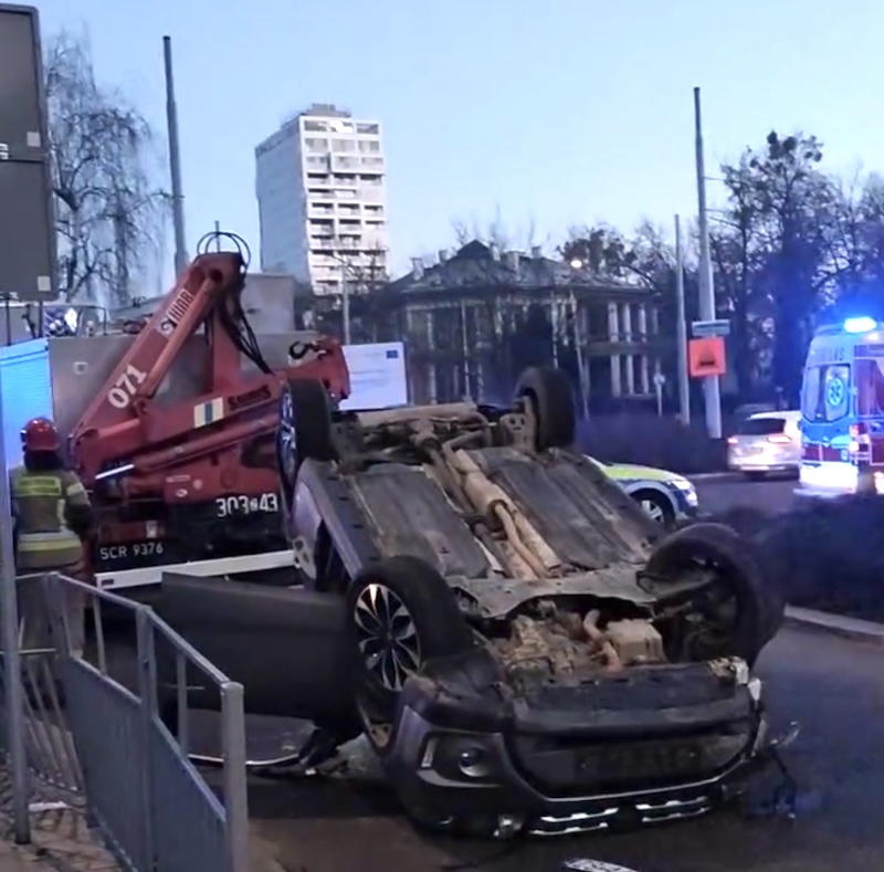 Na Placu Szarych Szeregów, przy zjeździe w Aleję Wojska Polskiego, dachował samochód osobowy Suzuki. Do wypadku doszło w piątek 6 marca przed godz. 7. Na miejscu pracują służby.