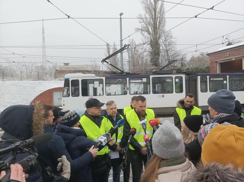 - Dziś rano wyjechało 28 tramwajów. Na tę chwilę jeździ ich 38 (potem liczba składów stopniowo wzrosła do 45 - AS) - mówił prezes spółki Tramwaje Szczecińskie Krystian Wawrzyniak podczas konferencji prasowej zorganizowanej w środę po południu w zajezdni Pogodno. - Takie oblodzenie sieci trakcyjnej, tak intensywne, nigdy wcześniej nie wystąpiło. Czegoś takiego nie pamiętają pracownicy, którzy pracują od czterdziestu lat. Wcześniej z oblodzeniem radziliśmy sobie tramwajami "N", które mają bardzo specyficzny pantograf. One niwelowały zagrożenie. Nie mieliśmy takiej sytuacji, żeby w trakcie funkcjonowania pojazdów na mieście zamarznięcie trakcji powodowało utknięcie tych pojazdów.