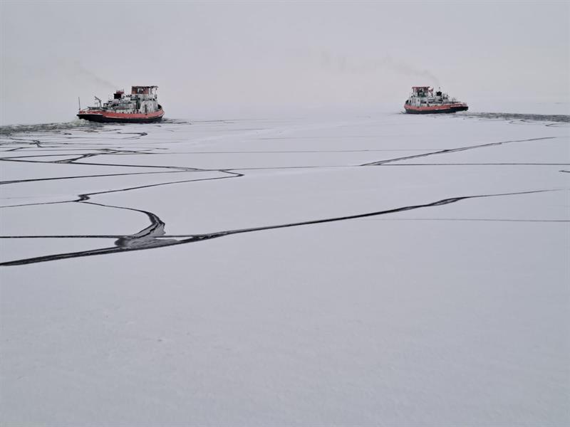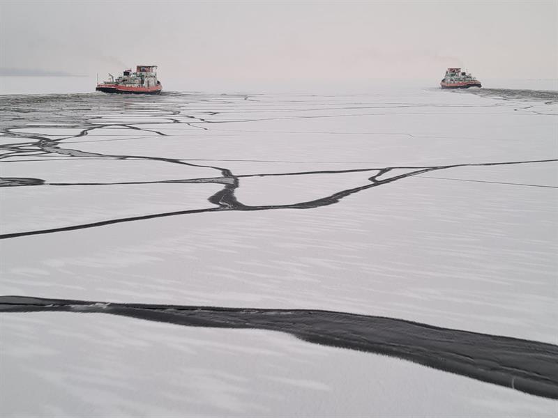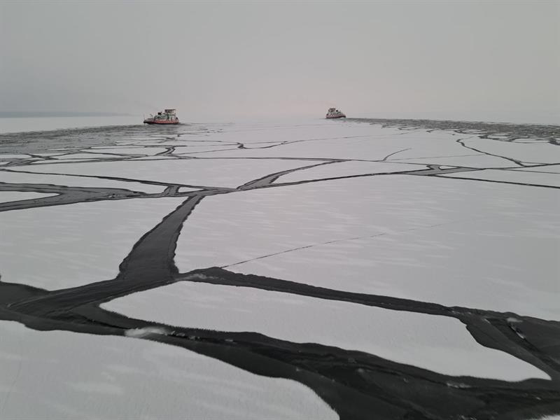 O godzinie 8 z bazy w Szczecinie - Podjuchach wypłynęło sześć polskich lodołamaczy: Dzik, Odyniec, Tarpan, Ocelot, Andrzej oraz Stanisław. Pierwszym etapem działań jest wyłamanie rynny lodowej na jeziorze Dąbie. Stworzenie tej przestrzeni jest kluczowe, aby lód spływający z górnych odcinków rzeki mógł bezpiecznie przemieszczać się w stronę Zalewu Szczecińskiego i Bałtyku, nie powodując spiętrzeń wody. Po zakończeniu prac na jeziorze jednostki zostają rozdzielone. Część z nich udaje się na postój do Gryfina, by stamtąd kontynuować pracę w górę rzeki, pozostałe natomiast wracają do bazy macierzystej.