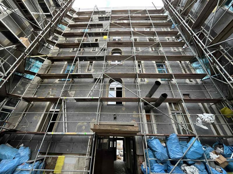 Tegoroczna dotacja BMKZ opiewała na kwotę 250 tys. zł., wniosek na realizację kolejnych prac w 2026 r. został już złożony. Obecnie w kamienicy trwa również remont elewacji frontowej budynku, docieplenie elewacji od strony podwórza, kompleksowy remont instalacji elektrycznej i domofonowej, a także remont klatki schodowej. Ponadto wspólnota realizuje wymianę pionów instalacji wod.-kan. i poziomów w piwnicach.