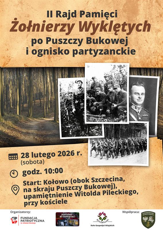 W sobotę o godz. 10, w przeddzień Narodowego Dnia Pamięci Żołnierzy Wyklętych, odbędzie się II Rajd Pamięci Żołnierzy Wyklętych po Puszczy Bukowej, który zakończy się ogniskiem partyzanckim.