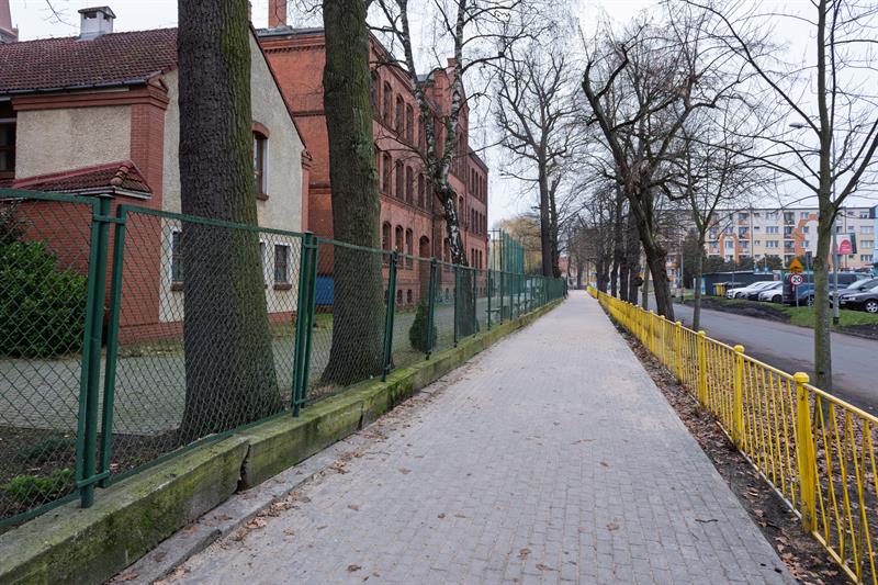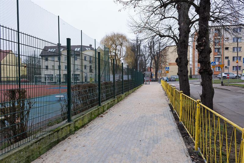 W Dąbiu, przy ul. Mierniczej, zakończono modernizację fragmentu chodnika zlokalizowanego w sąsiedztwie Szkoły Podstawowej nr 23 im. Mariusza Zaruskiego.