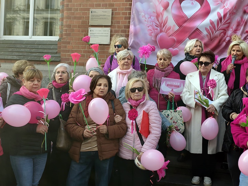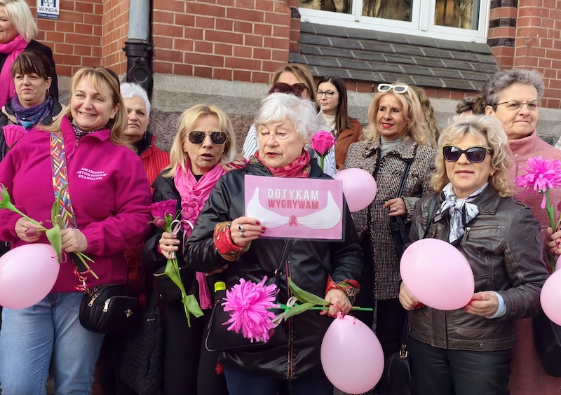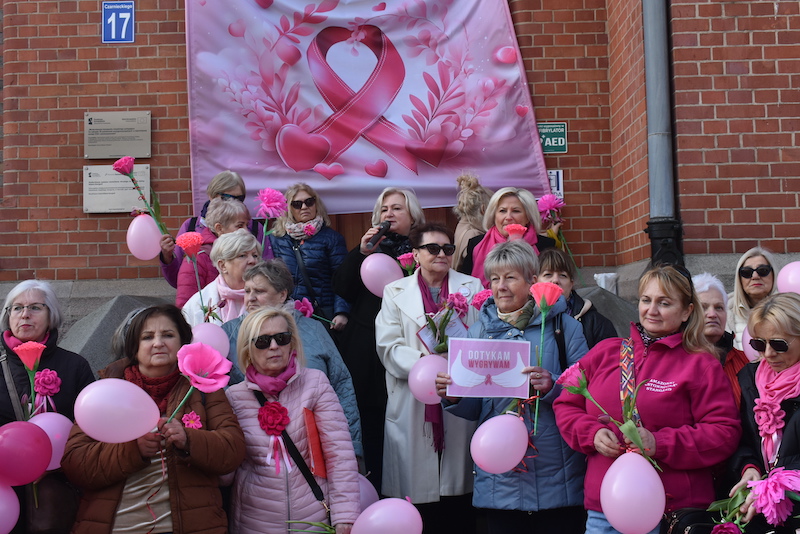 Symboliczny moment podkreślił solidarność kobiet, które wspierają się w walce z chorobą oraz w działaniach edukacyjnych na rzecz profilaktyki.