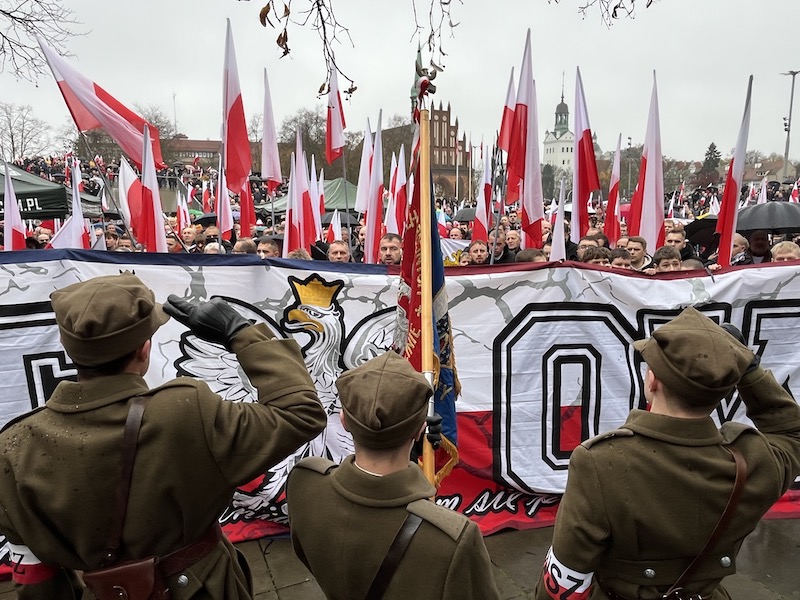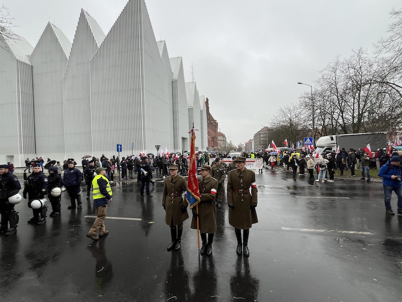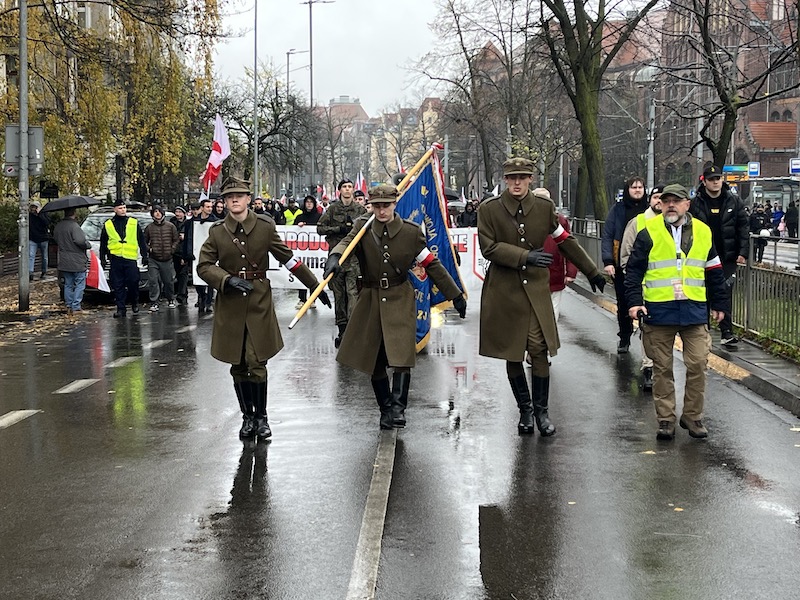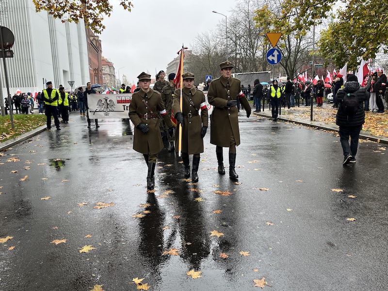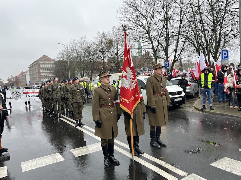 Szczeciński Marsz Niepodległości, jedyną naprawdę autentyczną, oddolną inicjatywę świętowania rocznicy niepodległości - co nie zmienia faktu, że te oficjalne wydarzenia są równie potrzebne - otworzyło zgromadzenie na placu Solidarności. Następnie kilku, a może i kilkunastotysięczny tłum ruszył w stronę placu Żołnierza Polskiego i Bramy Portowej. Pochód otwierał rekonstrukcyjny oddział żołnierski.