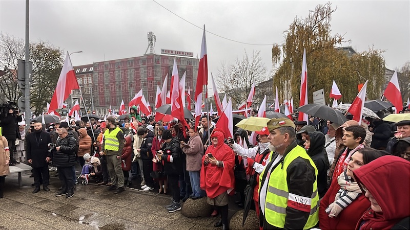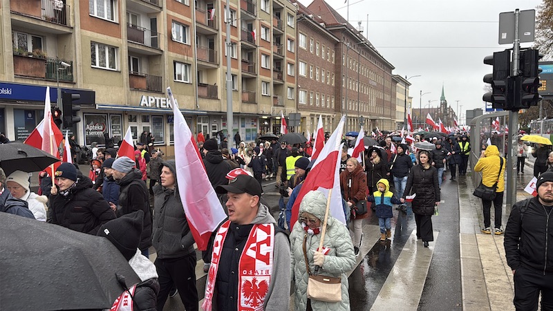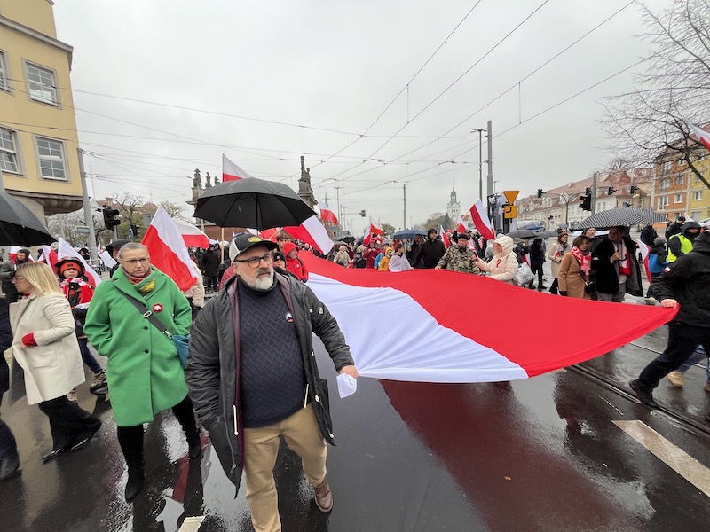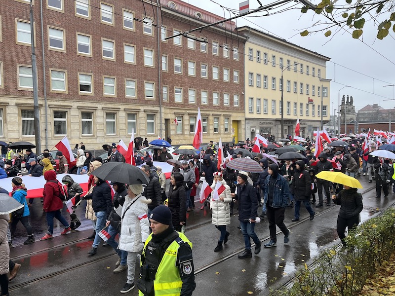 Takich tłumów na Szczecińskim Marszu Niepodległości jeszcze chyba nie było w piętnastoletniej historii tego niepodległościowego wydarzenia. „Bronimy polskich granic” - pod takim hasłem tysiące szczecinian przeszły ulicami miasta począwszy od placu Solidarności, a skończywszy na placu Szarych Szeregów. Do udziału w liczniejszym niż w latach poprzednich marszu nie zmobilizowała uczestników na pewno deszczowa pogoda. W pochodzie ze śpiewem na ustach szły całe rodziny, nierzadko z dziećmi, ludzie z różnych środowisk i partii, kibice Pogoni obok członków stowarzyszeń patriotycznych i kresowych. Wielu bez parasoli.