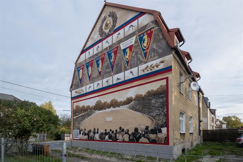 Na ścianie budynku przy ul. Gryfińskiej w Szczecinie-Dąbiu powstał mural poświęcony Pogoni Szczecin. Malowidło przedstawia dawny stadion przy ul. Twardowskiego – widok z perspektywy spod legendarnego zegara, dobrze znanego starszym kibicom.
