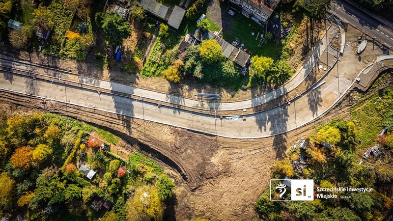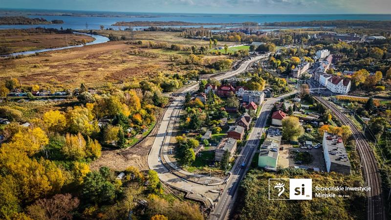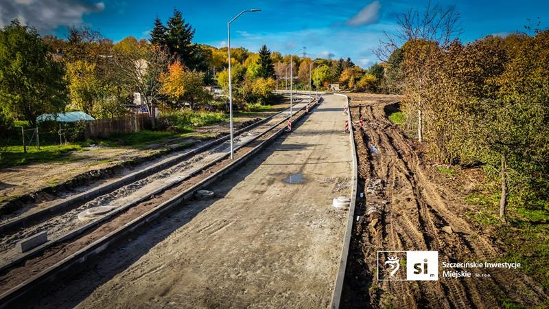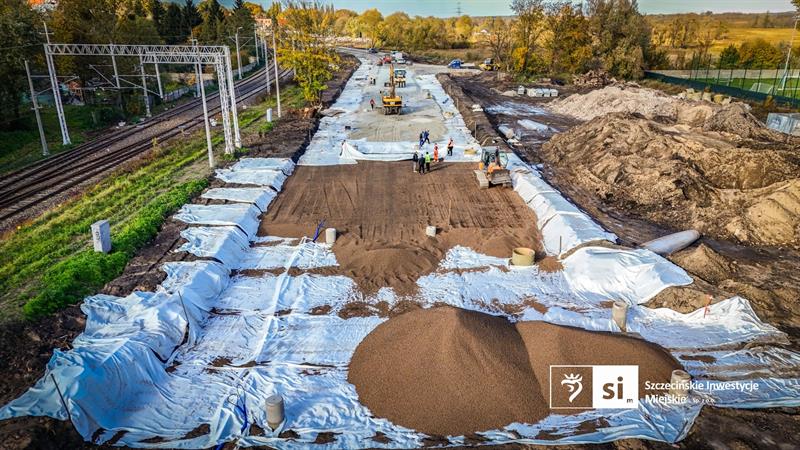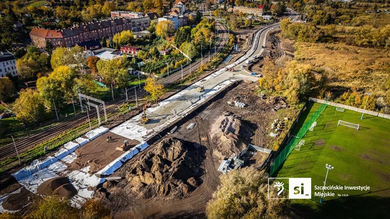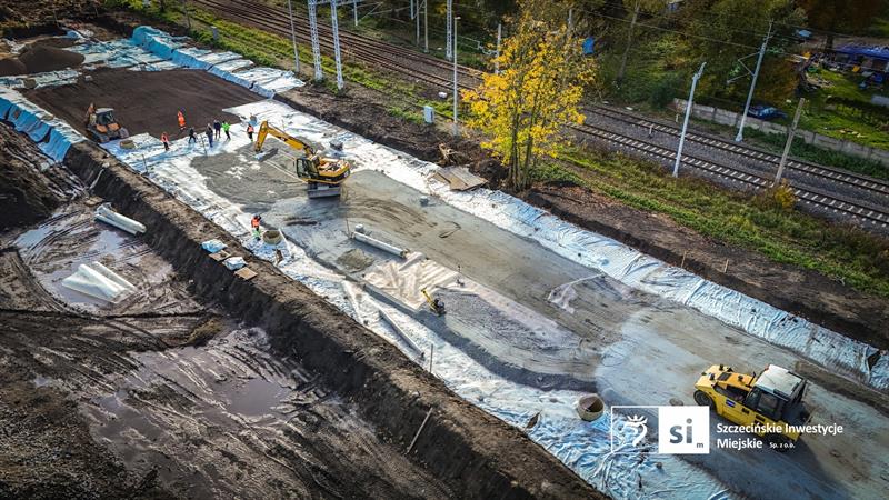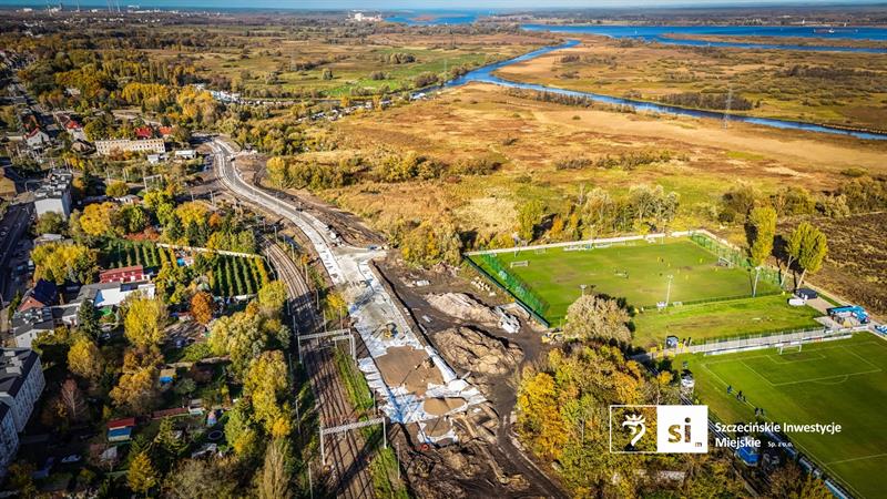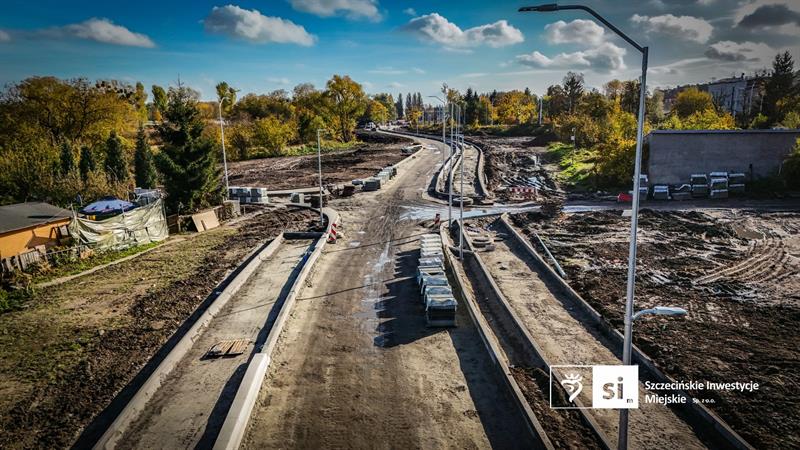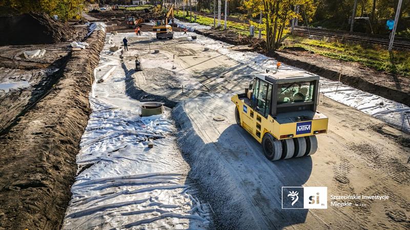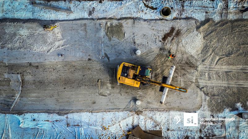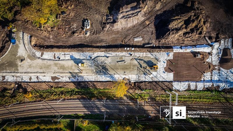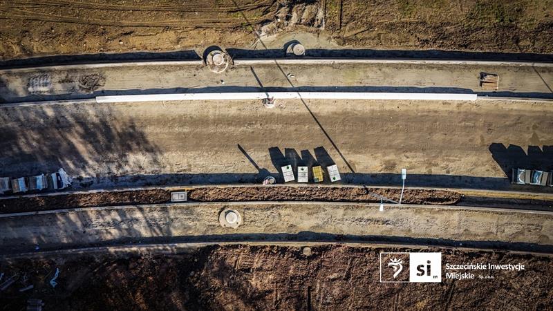 Na północy Szczecina trwają prace przy nowej drodze biegnącej wzdłuż ulicy Stołczyńskiej. Zamiast nieutwardzonych terenów widać już przebieg przyszłej trasy, która połączy okoliczne tereny inwestycyjne z miejską siecią drogową.