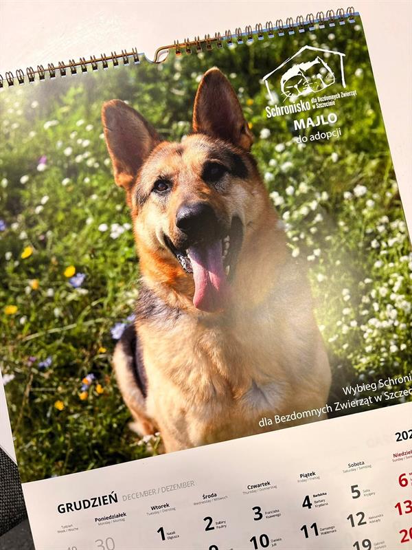 – Zawsze staramy się, aby na kartach kalendarza pojawiały się nie tylko nasze psiaki, ale również pejzaże Szczecina. Tym razem w kolejnych miesiącach pojawiają się np. Willa Lentza, urokliwa kamieniczka z ul. Kuśnierskiej, pl. Batorego i Lotników, piękna magnolia sprzed budynku Radia Szczecin. Z mniej oczywistych – al. Piastów i Rondo Hakena, a ze sztandarowych – „szpinakowy pałac”, Wały Chrobrego i Jezioro Szmaragdowe. Natomiast Majlo pozuje na tle schroniskowego wybiegu, bo… nie lubi jazdy samochodem – opowiada kier. Ewa Mrugowska.