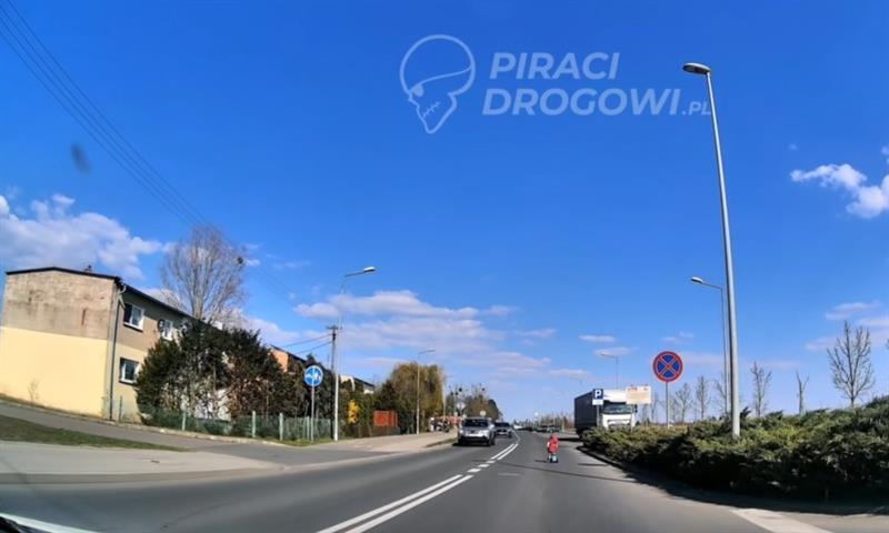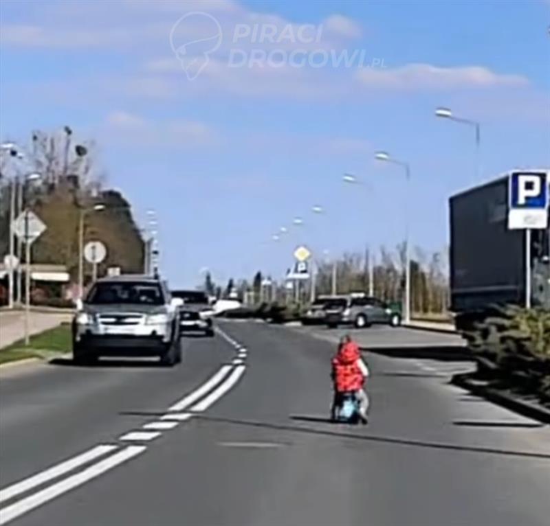 Sytuacja została zarejestrowana i opublikowana przez portal Piraci Drogowi. Na nagraniu widać dziecko jadące jezdnią w kierunku starego cmentarza. W pewnym momencie jeden z kierowców reaguje, wołając do starszego chłopca znajdującego się w pobliżu, by zabrał młodsze dziecko z drogi. Po chwili maluch zjeżdża na pobocze.