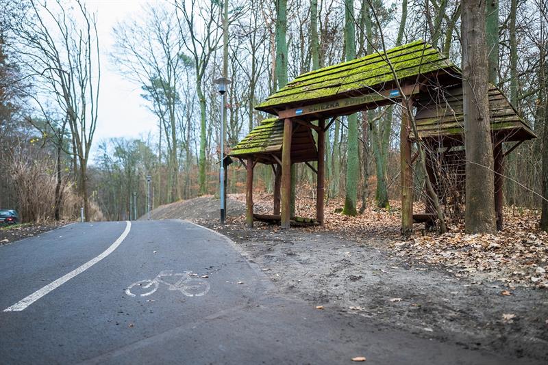 Z jednej strony wjedziemy na nią ze ścieżki pieszo-rolkowo-rowerowej wokół Goplany, z drugiej – ze ścieżki rowerowej na węźle Głębokie.