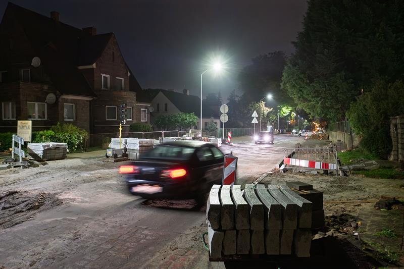 Na remontowanym odcinku ulicy Krzemiennej w Szczecinie, od skrzyżowania ze Smoczą i Skalistą do Floriana Szarego, działa już nowe oświetlenie. Wieczorami, gdy dotąd panował mrok, jest teraz jasno i bezpiecznie – mieszkańcy Podjuch zyskali wreszcie dobrze oświetloną drogę.