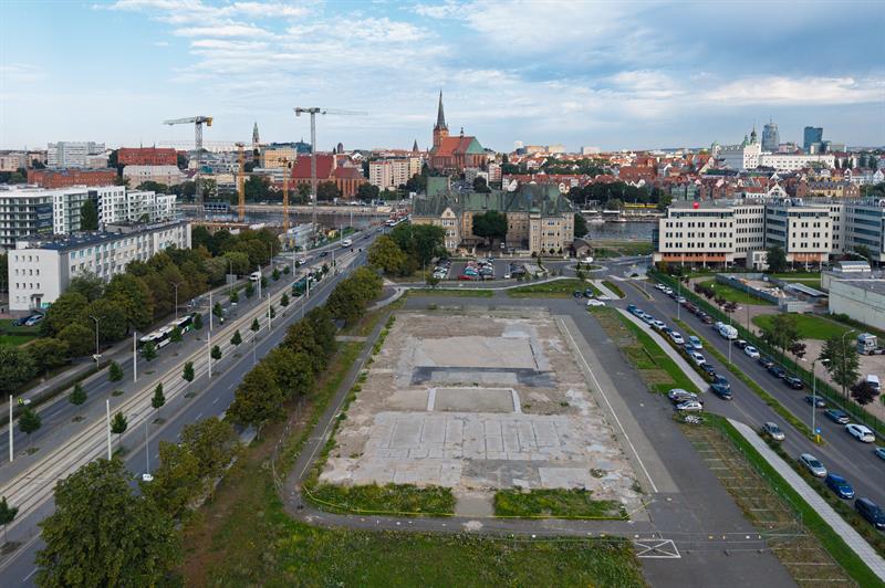 Teren znajduje się w wyjątkowej lokalizacji na prawym brzegu Odry, stanowiącej łącznik między ścisłym śródmieściem, a Łasztownią. Obszar ten, leżący w bezpośrednim sąsiedztwie głównych arterii komunikacyjnych i nadodrzańskich bulwarów, przez lata był kojarzony z charakterystyczną halą namiotową. Obiekt ten powstał w 2011 roku jako tymczasowa siedziba Opery na Zamku, a później służył m.in. Teatrowi Polskiemu i organizatorom wydarzeń kulturalnych. Po demontażu konstrukcji w 2025 roku działka została uprzątnięta i przygotowana pod nową inwestycję, która docelowo ma dopełnić nowoczesną zabudowę tej części Międzyodrza.