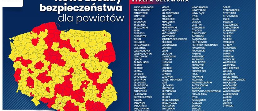 W czwartek lista objętych czerwoną strefą miast wojewódzkich powiększyła się o: Białystok, Bydgoszcz, Gdańsk, Kielce, Kraków, Lublin, Łódź, Olsztyn, Poznań, Rzeszów i Warszawa.